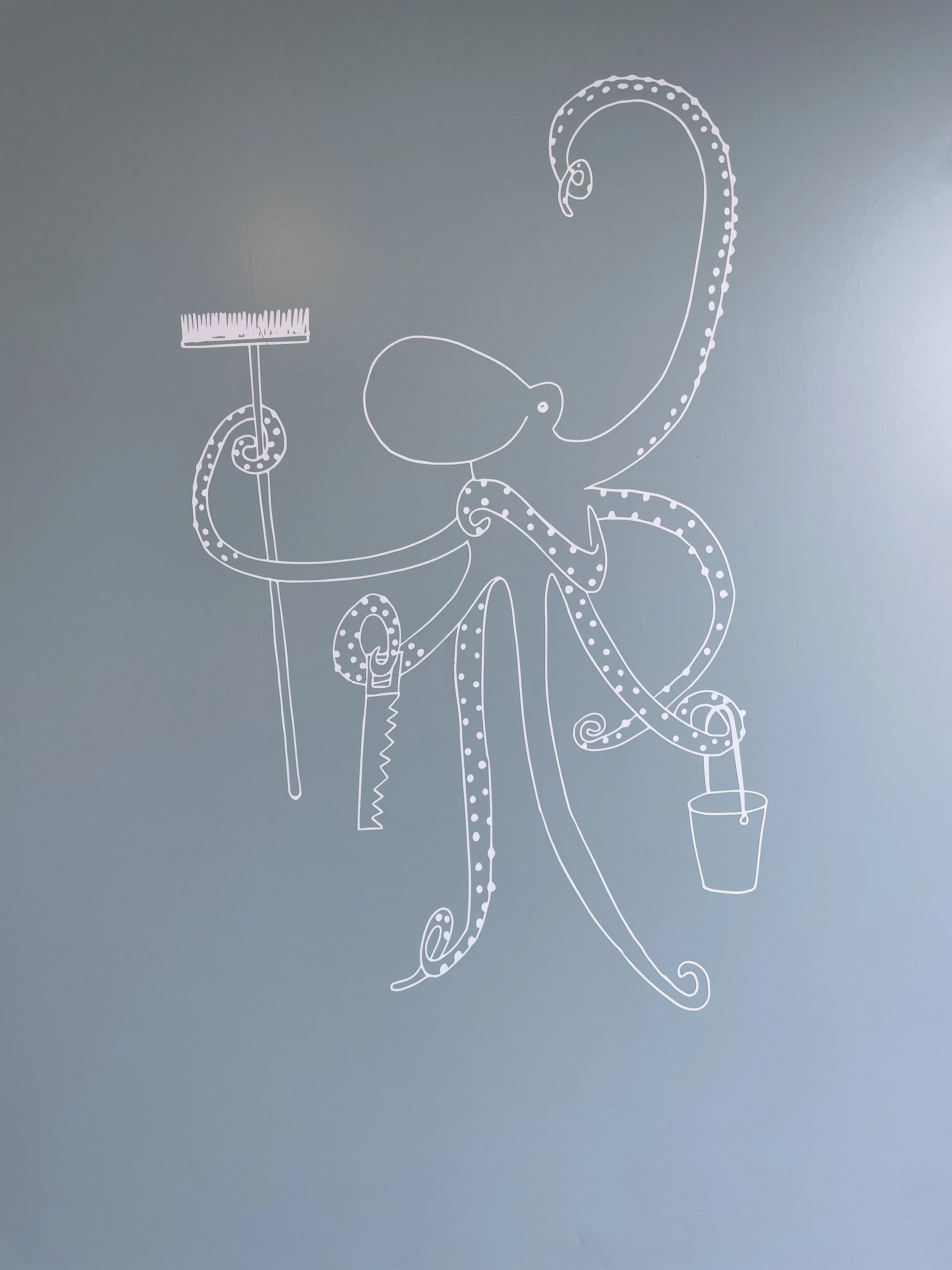 Binnen is het licht en fris. Uniseks douches en toiletten zorgen voor een efficiënte indeling. De zeedieren op de deuren geven een persoonlijk karakter.