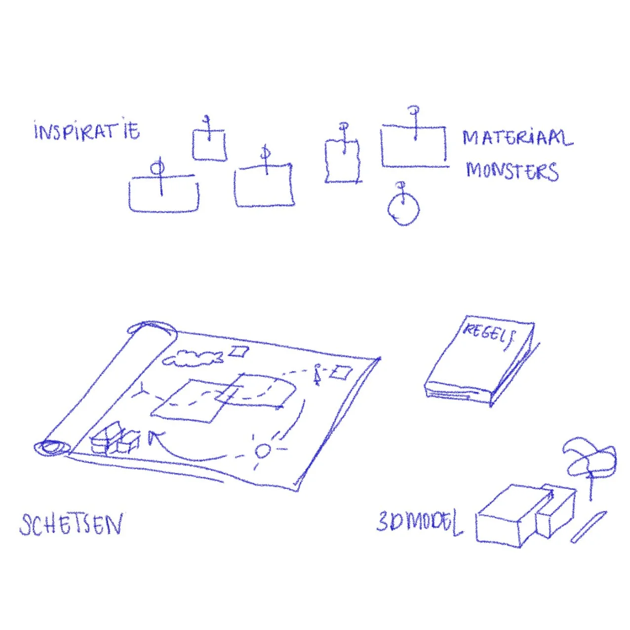 Op basis van de persoonlijke input worden ontwerpschetsen gemaakt, dit in samenhang met de bestaande context, het bestemmingsplan en de relevante regelgeving. De eerste ontwerpstudies richten zich op indeling, lichtinval, beleving, routing, duurzaamheid en materialen. Het concept, met het unieke verhaal en de beleving, vormt de rode draad door het hele project en loopt door alle fases heen.